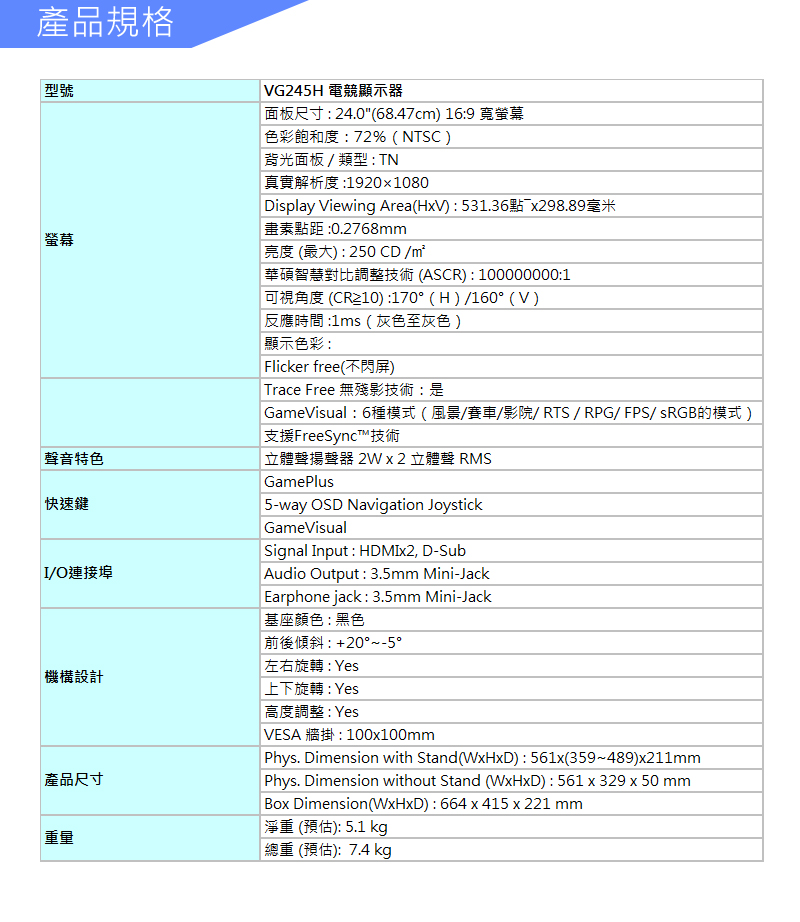 華碩 VG245H