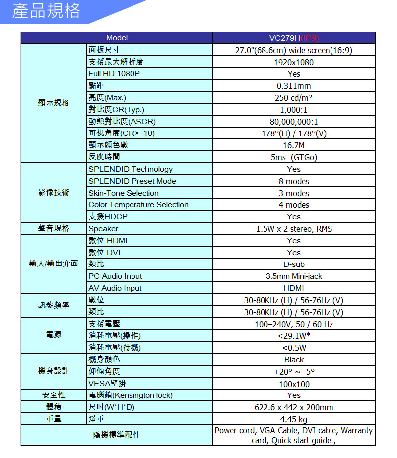 • 華碩 VC279H