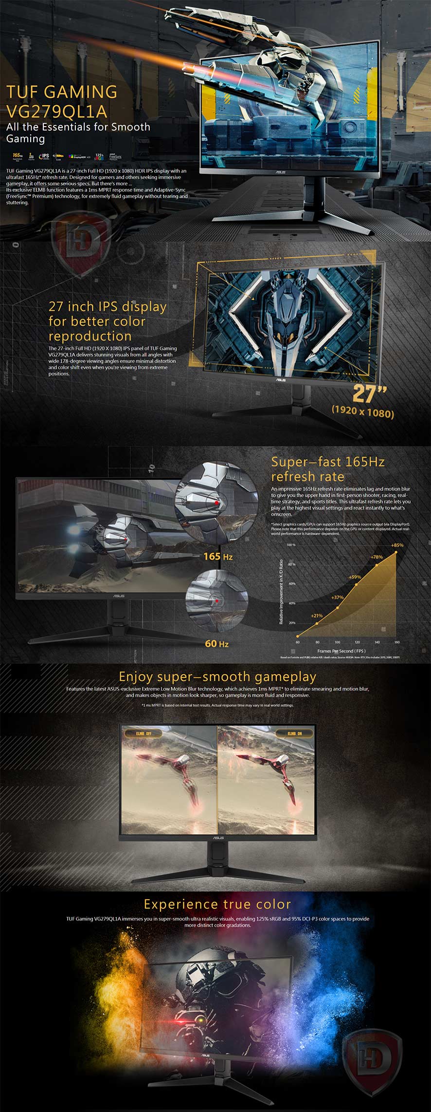 • 華碩 VG279QL1A(TUF/1ms/IPS/165Hz/含喇叭/Adaptive-Sync/HDR400)G-Sync兼容