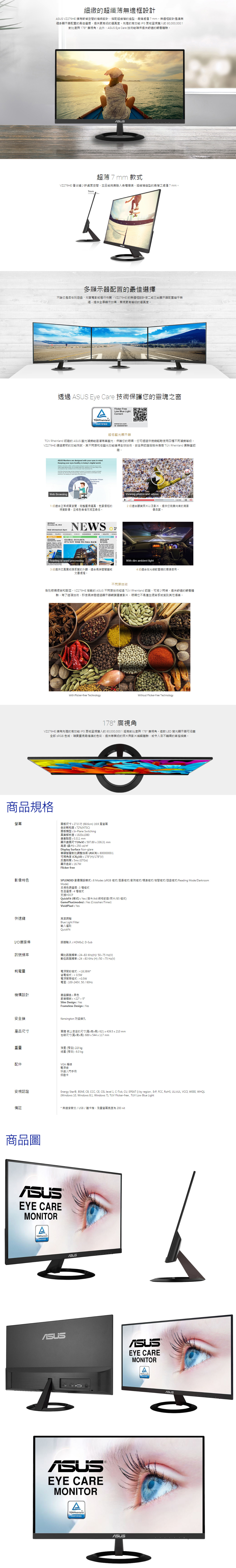 華碩 VZ279HE(1A2H/5ms/IPS/無喇叭)低藍光.不閃屏.超薄邊框