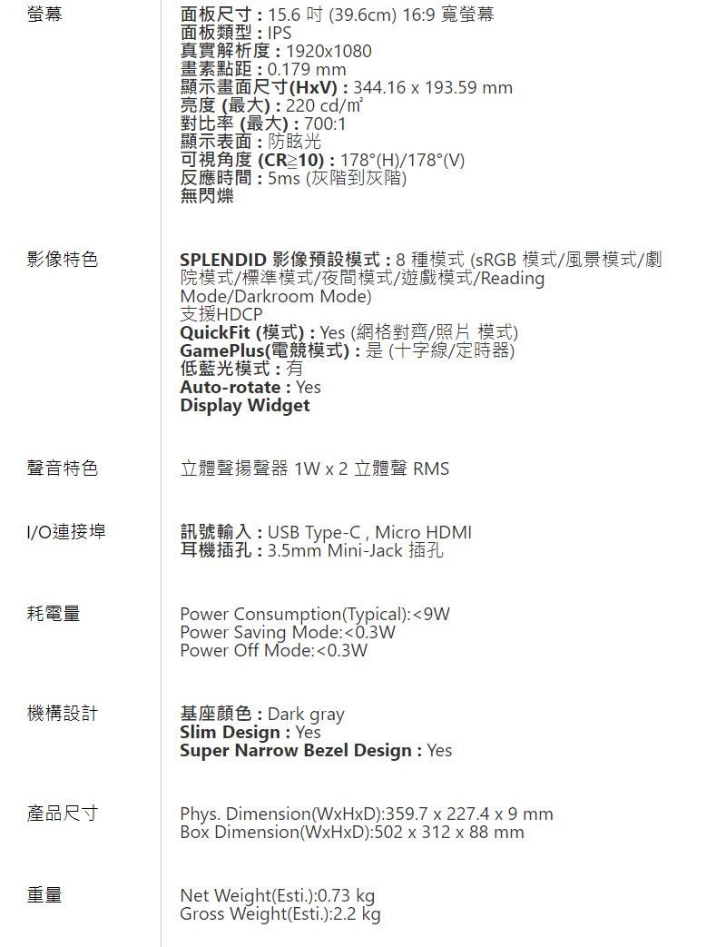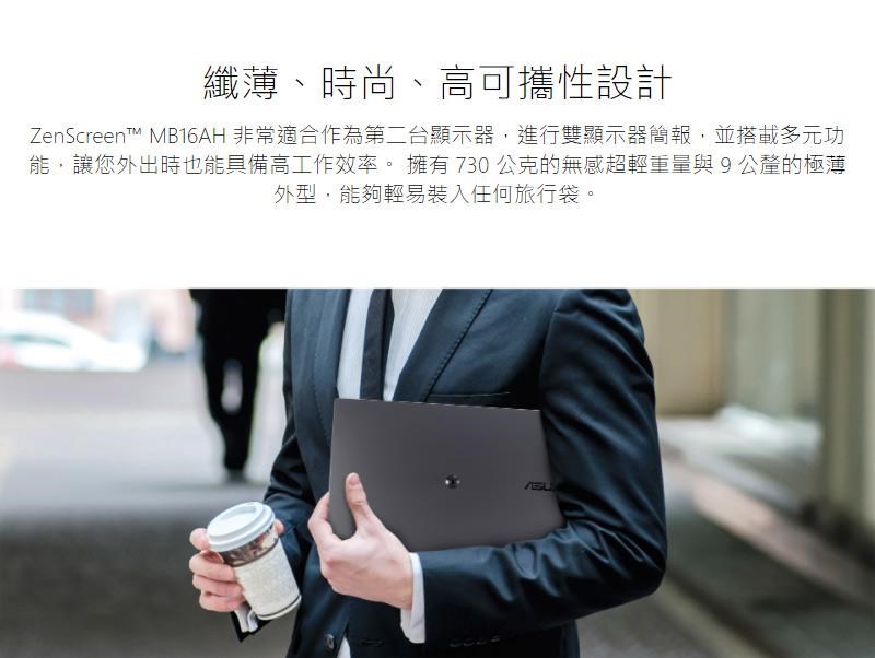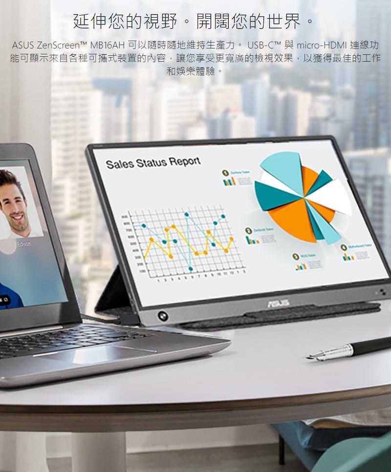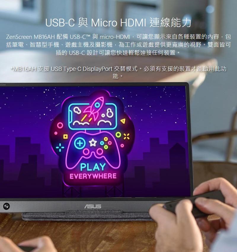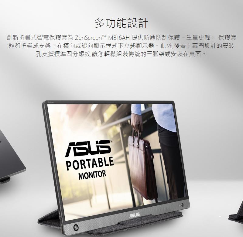 華碩 MB16AH [ZenScreen]可攜(15.6吋)(1920*1080 IPS)(USB-C)(Micro HDMI)