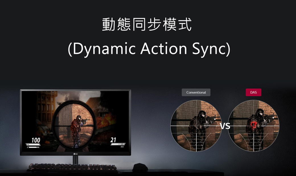DAS動態同步模式能讓您立即反應敵人的一舉一動,並且即時出手反擊,畫面絕不延滯。藉由將延遲減低到最小程度,讓您的感覺與快節奏遊戲中發生的真實場景同步。