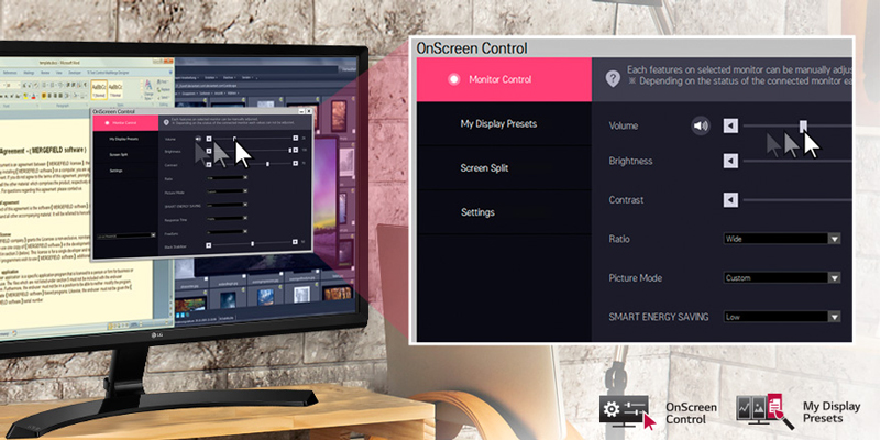 只需要滑鼠一個點擊,就能輕鬆設定應用程式中畫面選項,不再需要利用實體按鍵,另外,您可以在不同工作狀況,設定習慣專屬的閱讀模式,更貼近您的需求喜好。例如:做製作 Excel 需要長時間工作,可設定閱讀低藍光模式,瀏覽照片時,則可設定為照片模式,一但經過設定,螢幕則會在切換功能時,自動做改變。