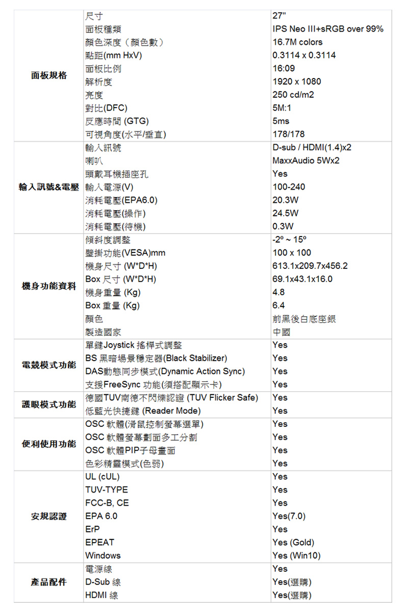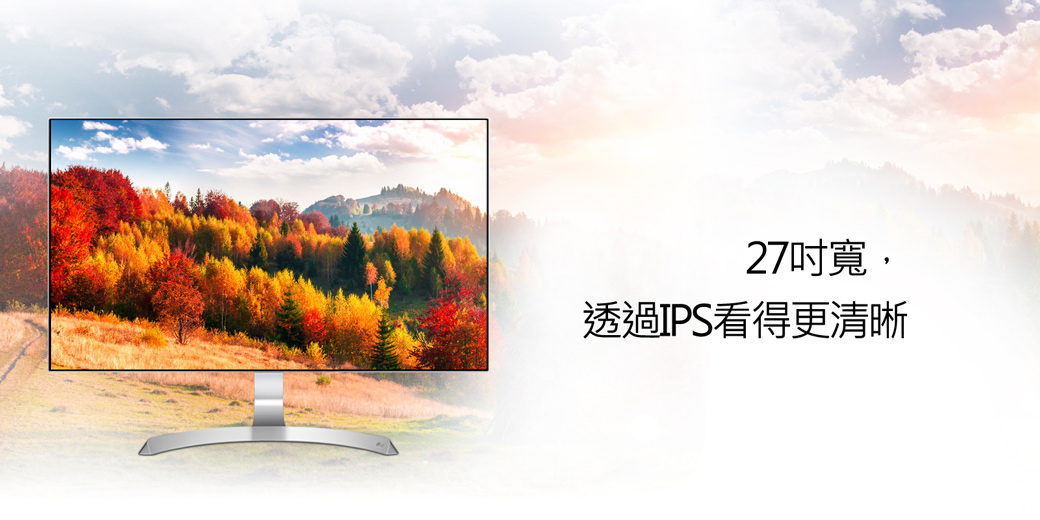 由於四邊無邊框顯示器的尺寸增加為27吋,因此觀賞者身歷其境的程度增加。您將體驗真實的觀賞內容,因為我們已加入Full HD IPS技術,該技術以從任何角度觀賞清晰以及色彩逼真而自豪。