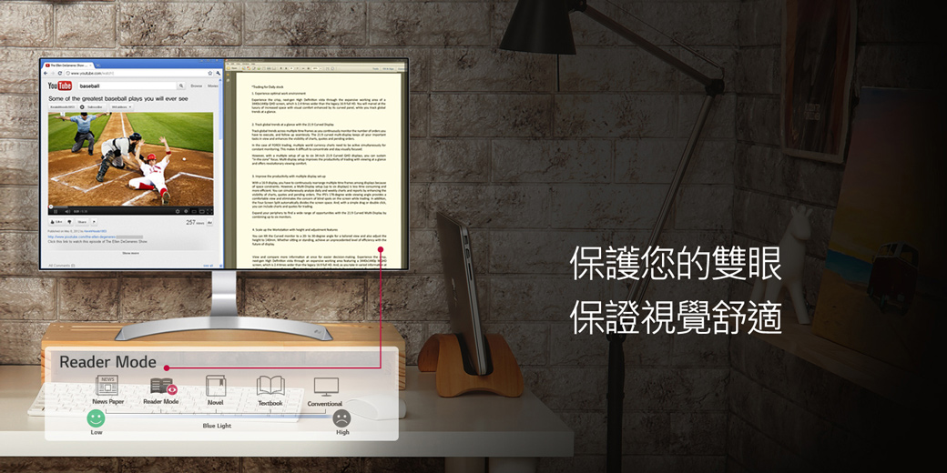 南德不閃爍認證與低藍光快捷鍵協助將視覺舒適度最大化,保護您的雙眼不受藍光傷害,並且將閃爍程度將低幾乎近於零的程度。