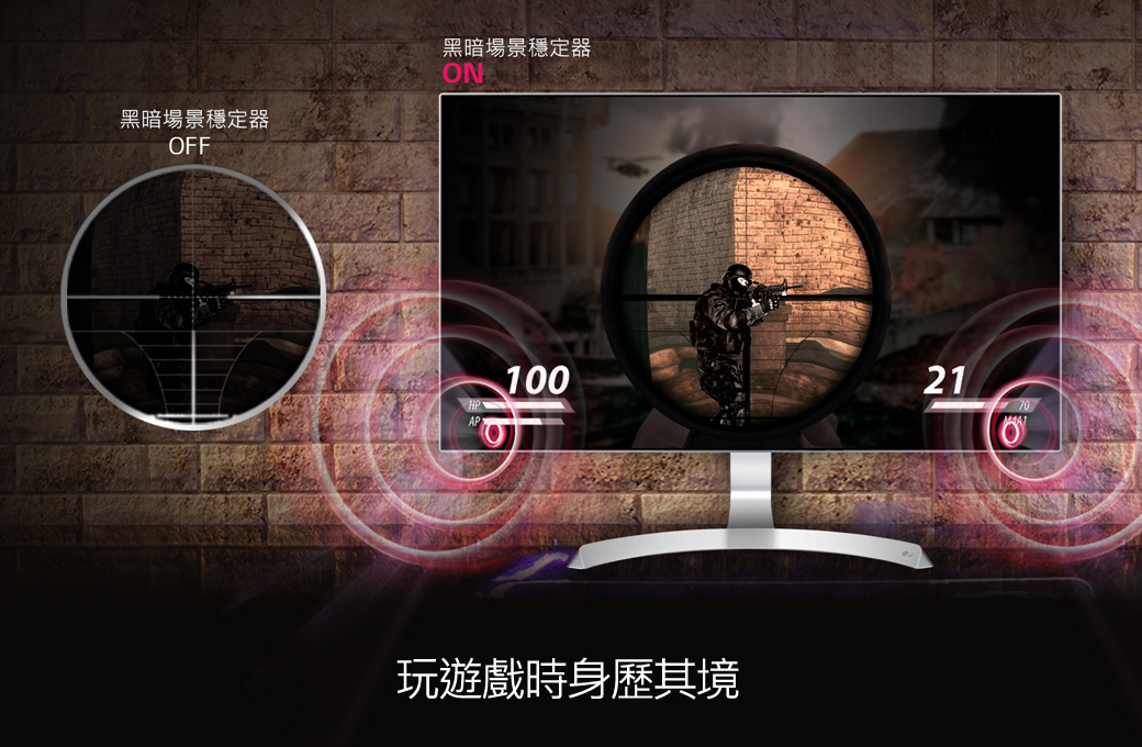 黑暗場景穩定器讓您即使在暗黑的場景中也能擁有更佳的視力。有了MAXXAUDIO® (內建高階音頻增強喇叭),您可以體驗清晰的高音和低音。