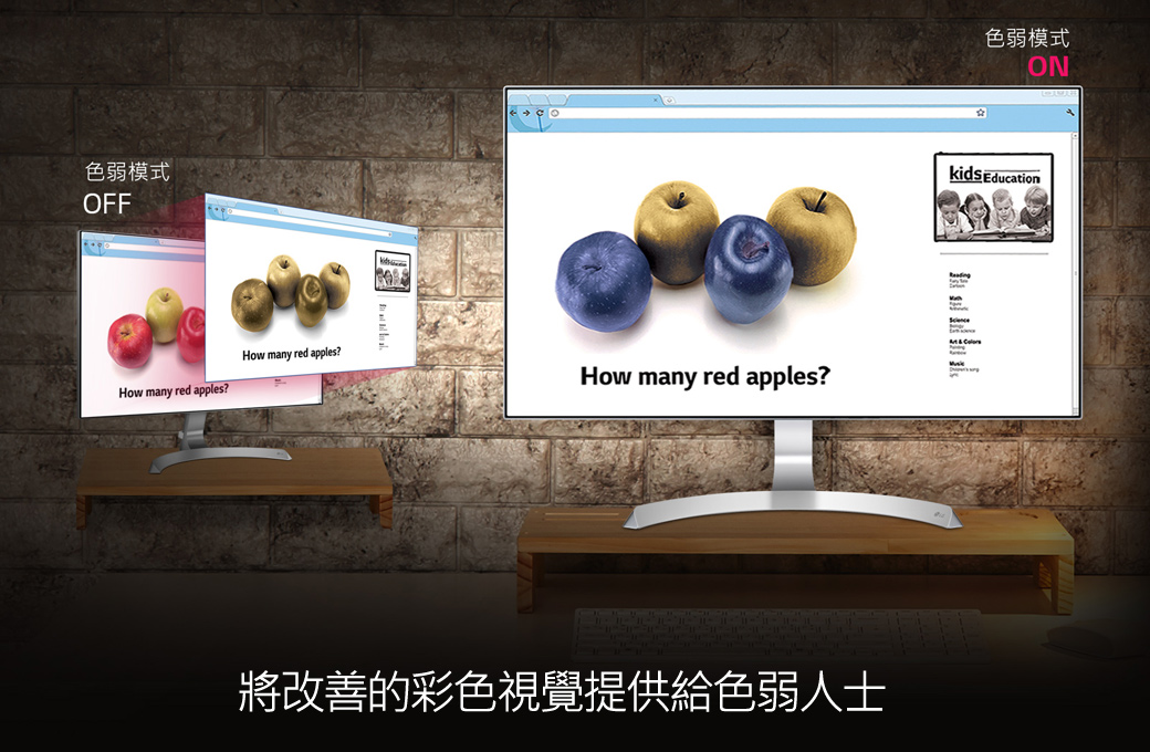 色彩修正算法用於協助那些色弱人士,讓難以辨識某些範圍色彩的這些色弱人士可以觀賞所有重要內容。