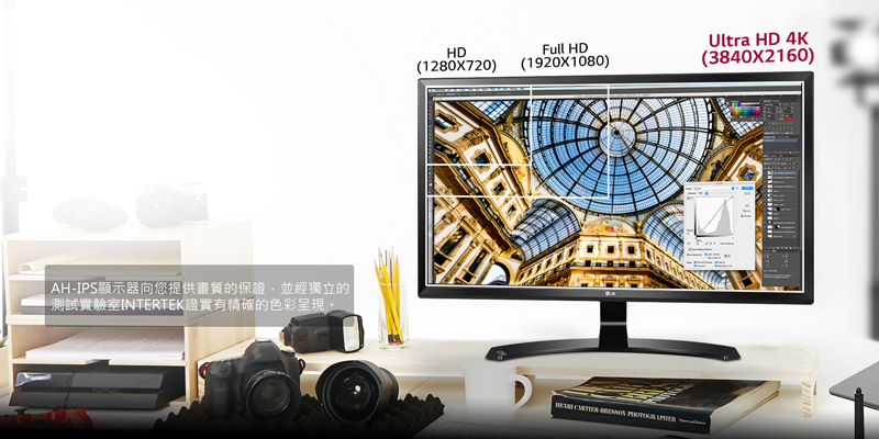 LG超高清AH-IPS顯示器提供更大的工作空間並且精確地詳盡呈現。