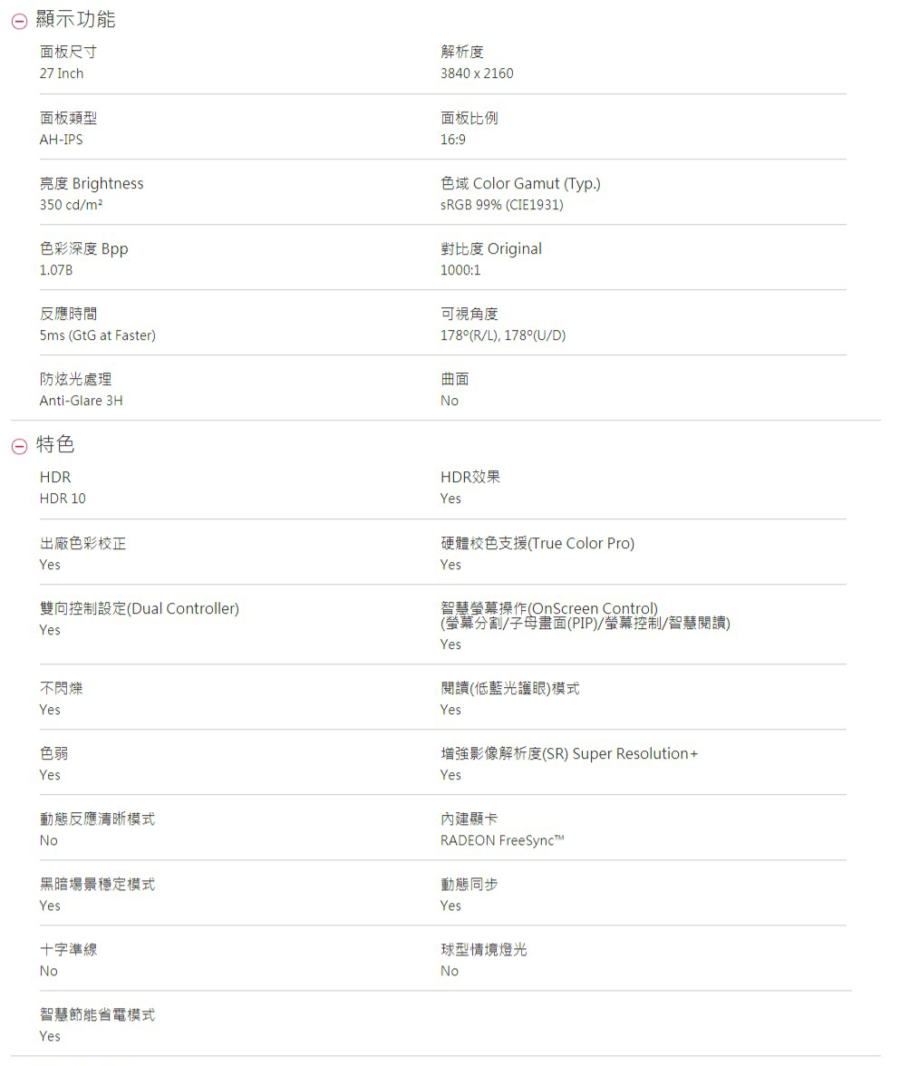 透過使用硬體校色(True Color Pro)功能優化色彩性能,造就絕大多數的 LG IPS 4K 顯示器廣域色譜和一致性。
