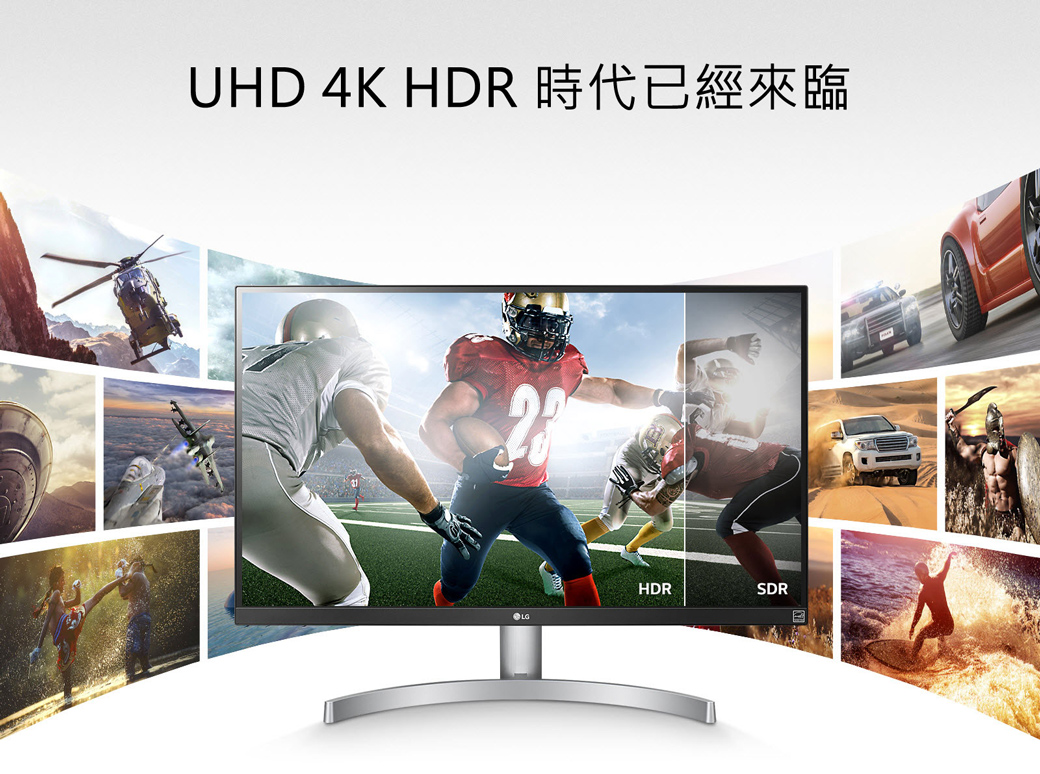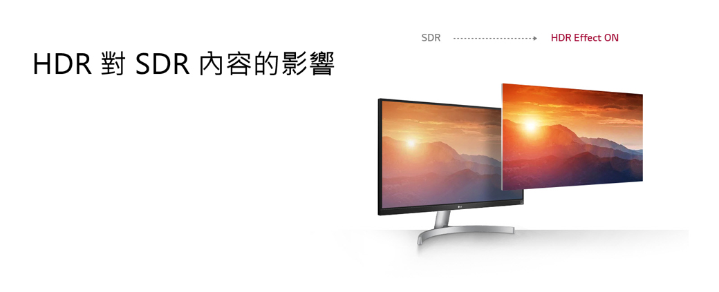 LG UHD 4K HDR 顯示器能將標準畫面內容轉為螢幕上的 HDR 畫質影片。透過擬真圖畫質演算法,它完美精進 SDR 內容的色調對映和亮度,帶來 HDR 般的全真體驗。