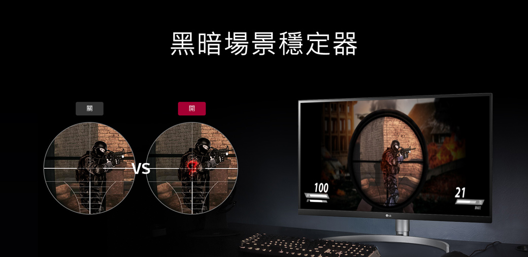 保持能見度,即使身處黑暗場景。黑暗場景穩定器可偵測低亮度環境,增加顯示器亮度,協助您找尋藏於暗處,伺機攻擊您的敵人。