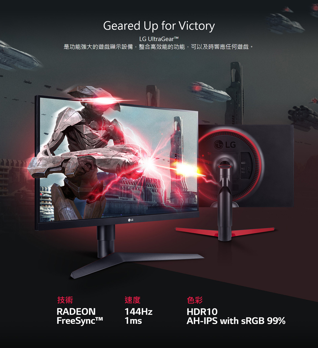 LG 27GL650F-B(2H1P/1ms/AH-IPS/144Hz/無喇叭/FreeSync/HDR10)專業玩家電競螢幕