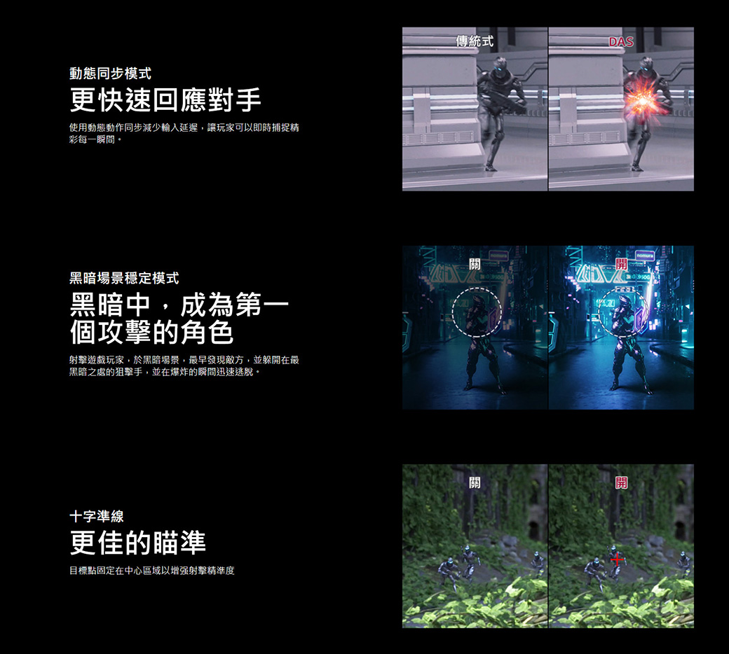 十字準線/動態同步模式/黑暗場景穩定模式