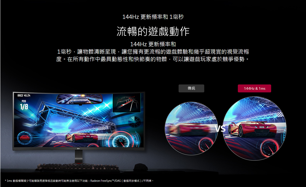 LG 34GL750-B(2H1P/1ms/AH-IPS/144Hz/無喇叭/FreeSync/HDR10)