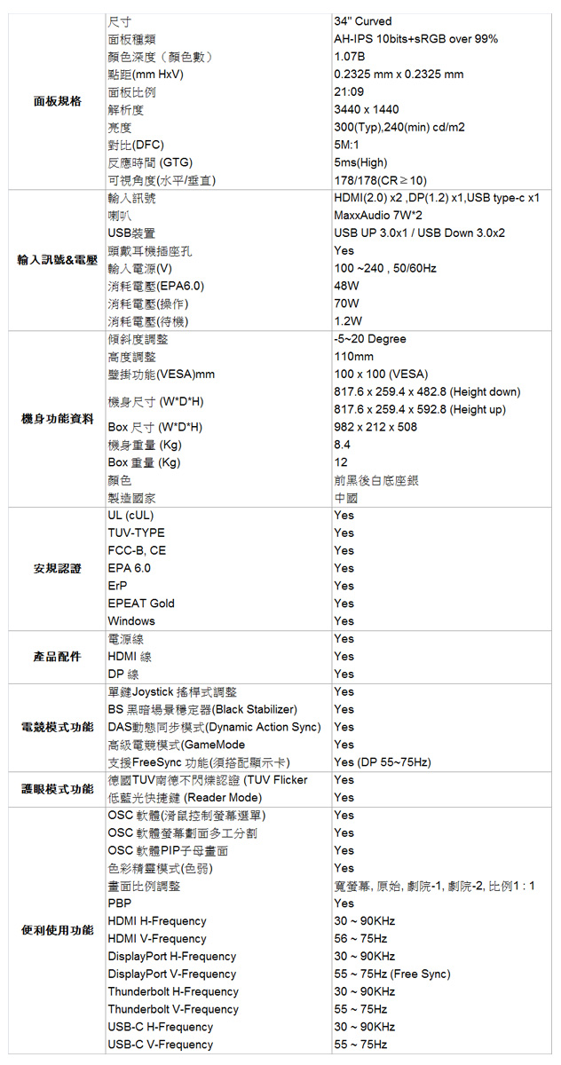 3440x1440 QHD解析度與IPS顯示器的組合帶給您更寬視野最身歷其境的感受,USB C型的一條電線簡化您的工作站。