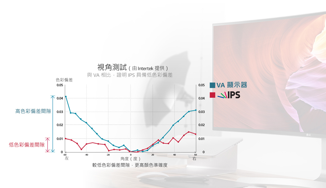 IPS顯示器提升色彩顯現,與VA顯示器不同,IPS顯示器可以做到178度不會出現色彩失真或色彩偏移。