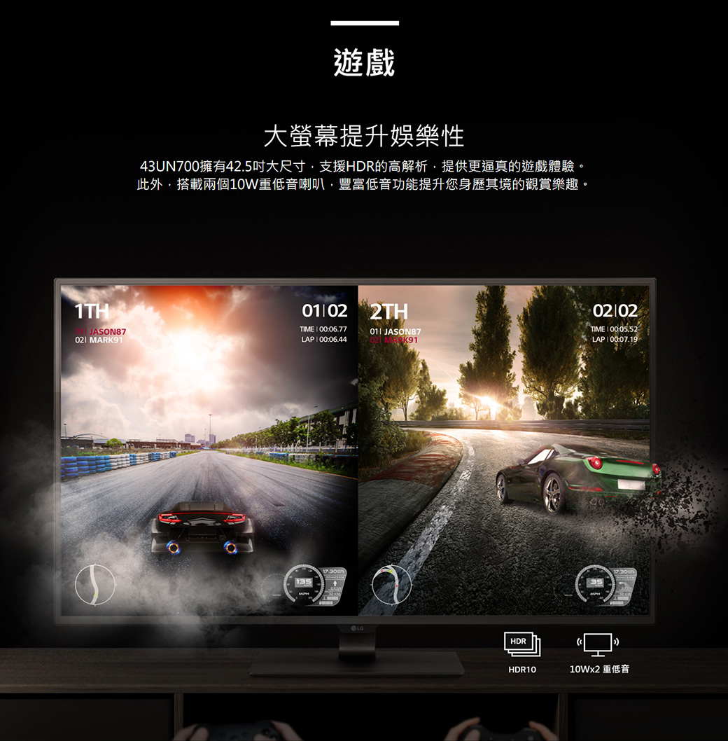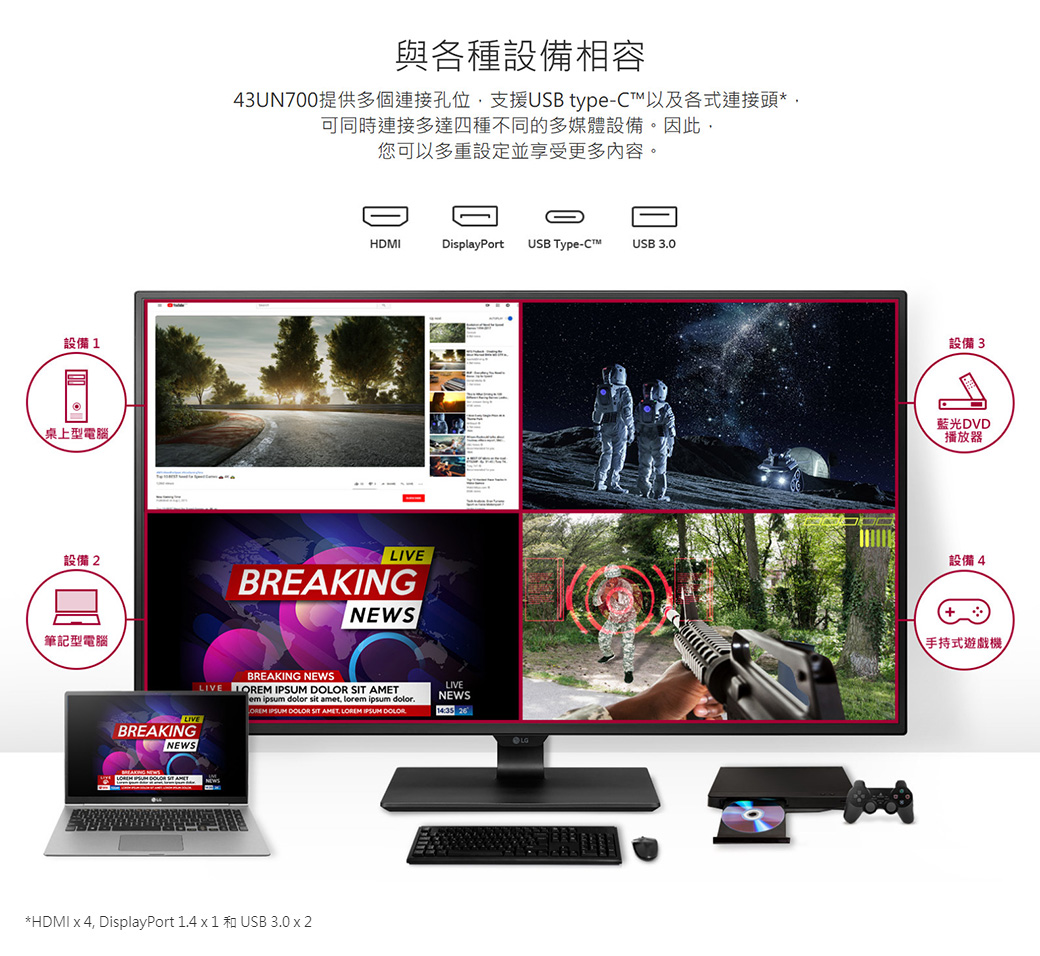 • LG 43UN700-B(4H1P1C/8ms/AH-IPS/含喇叭/HDR 10) 2PIP 雙子母畫面.遙控器