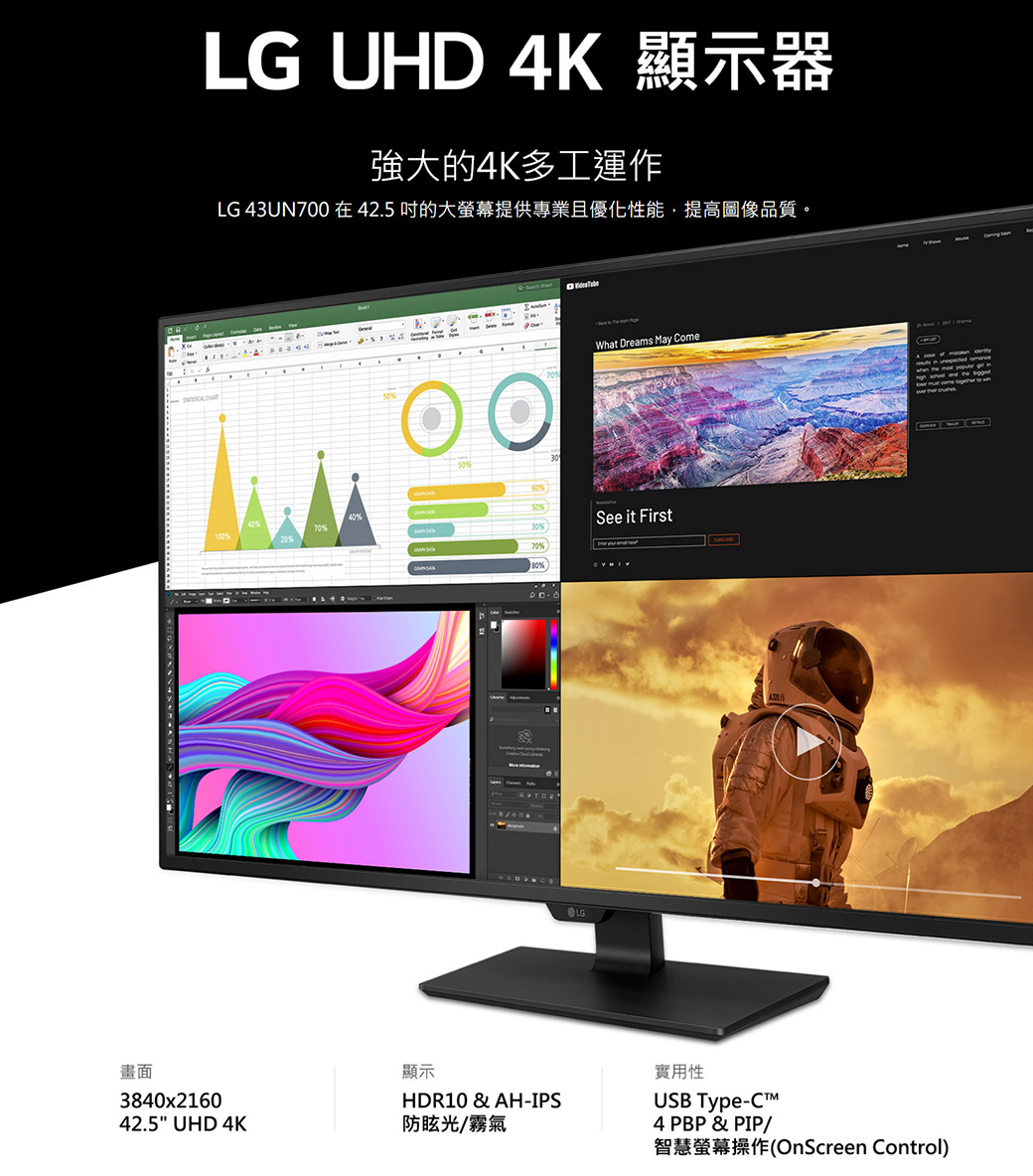 支援多工4PBP│HDR10│4K│AH-IPS│type-C │附遙控器