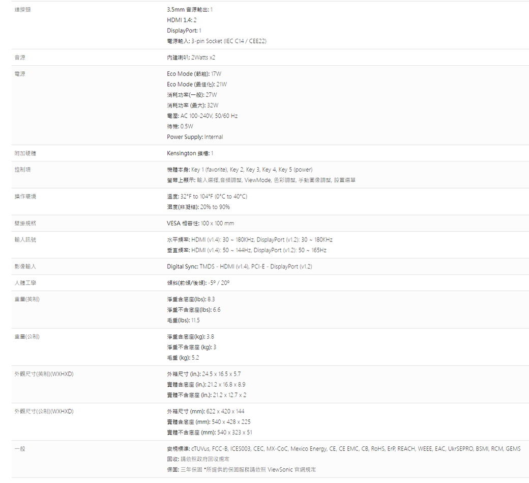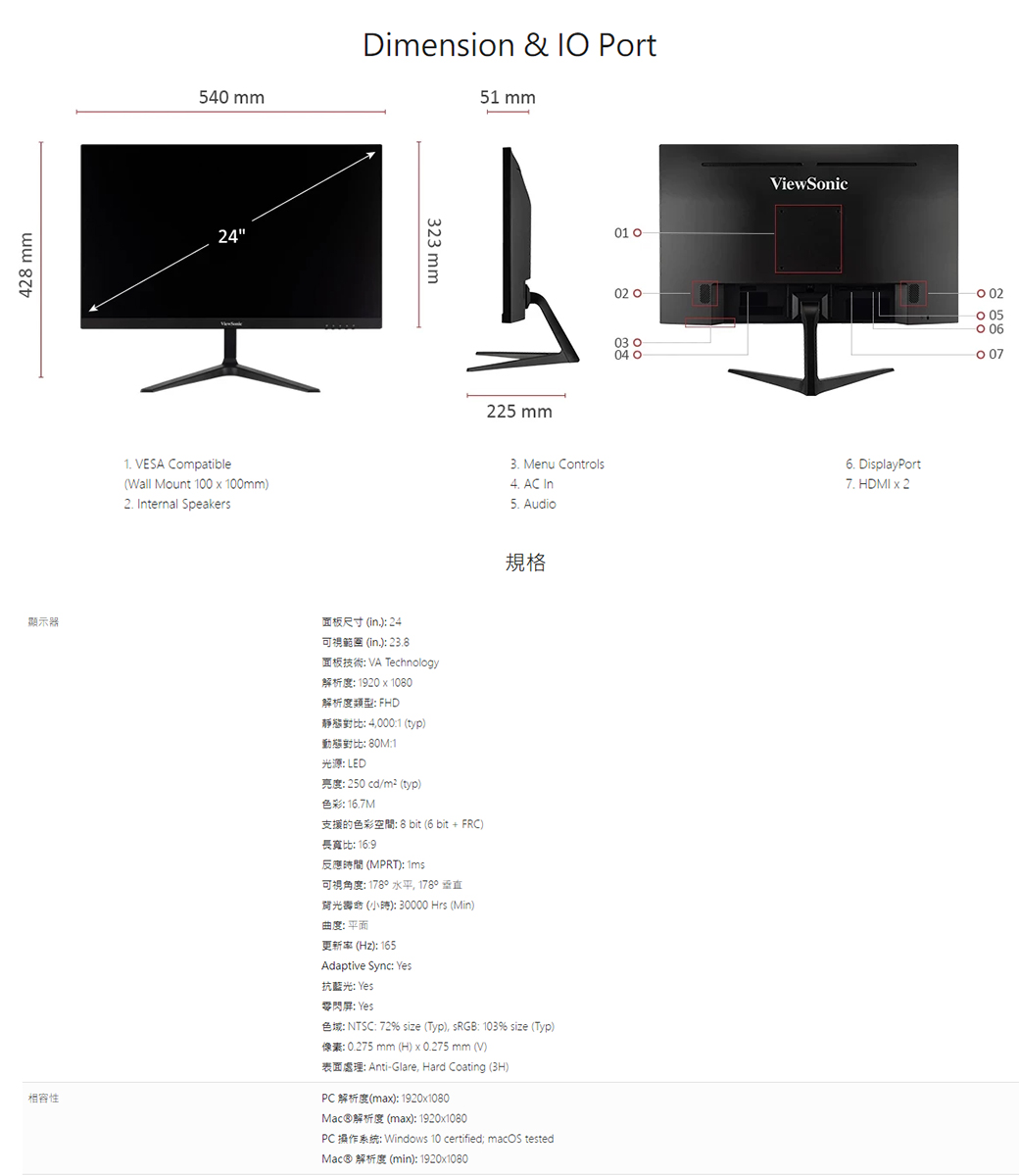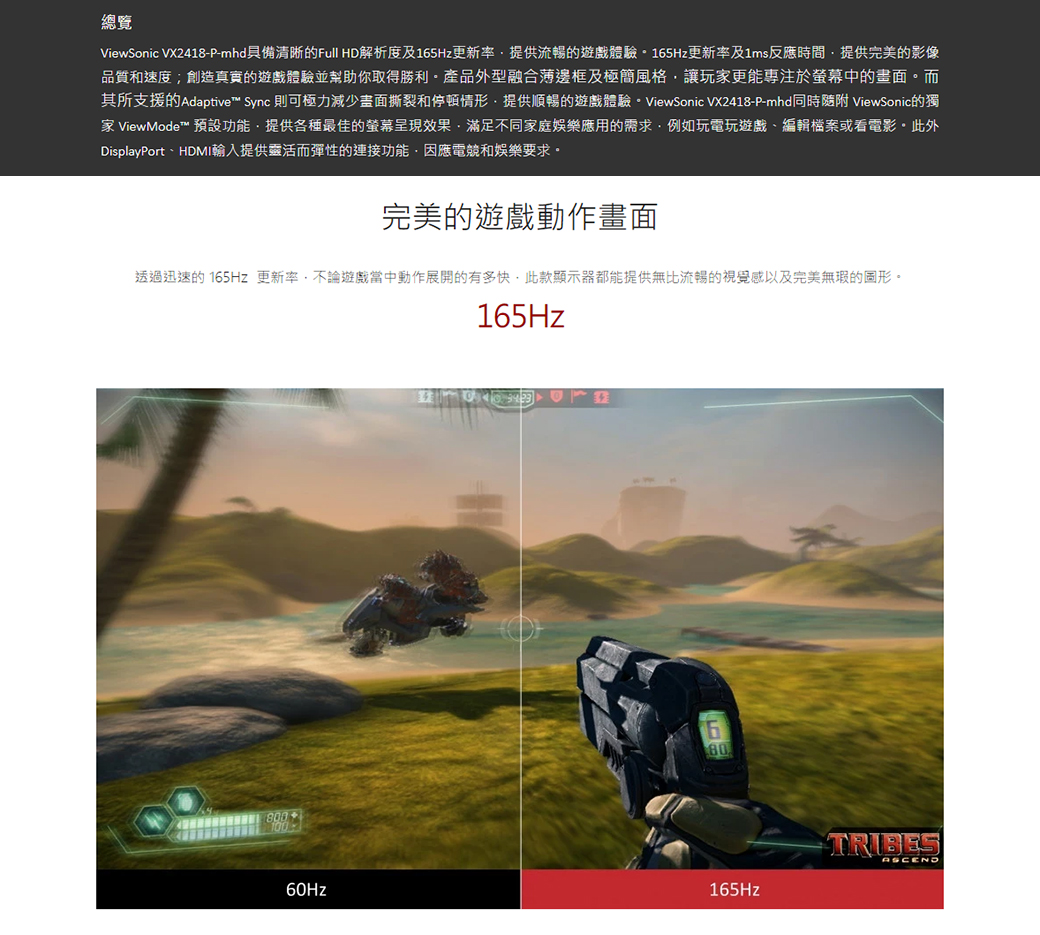 ViewSonic VX2418-P-MHD(2H1P/1ms/VA165Hz/含喇叭/Adaptive Sync) 保無亮點