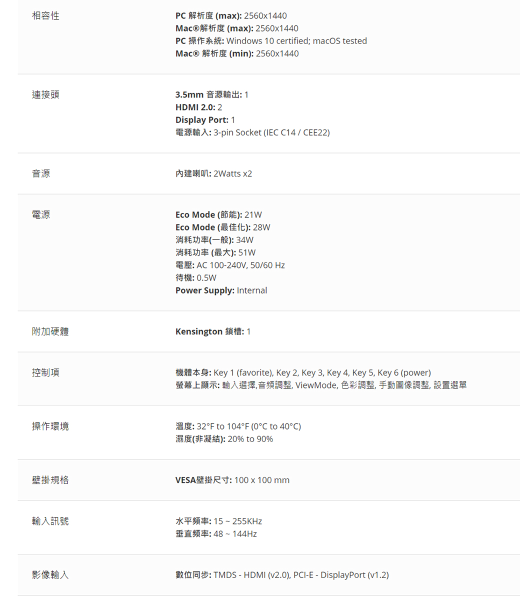 ViewSonic VX2705-2KP-MHD(2H1P/1ms/IPS/144Hz/含喇叭/Adaptive