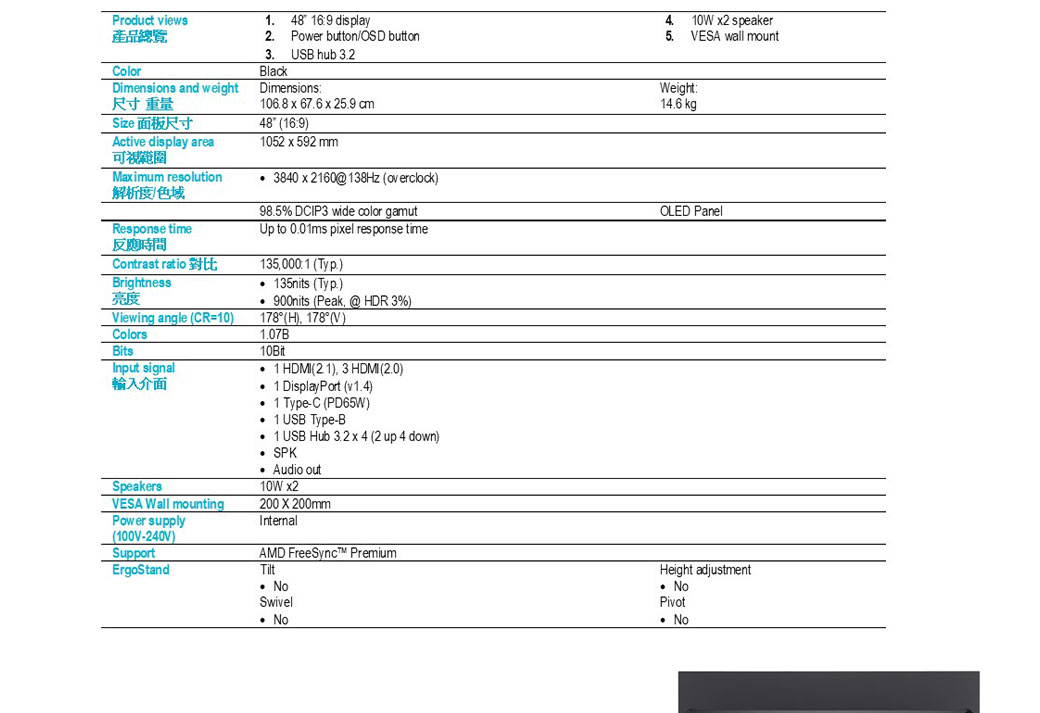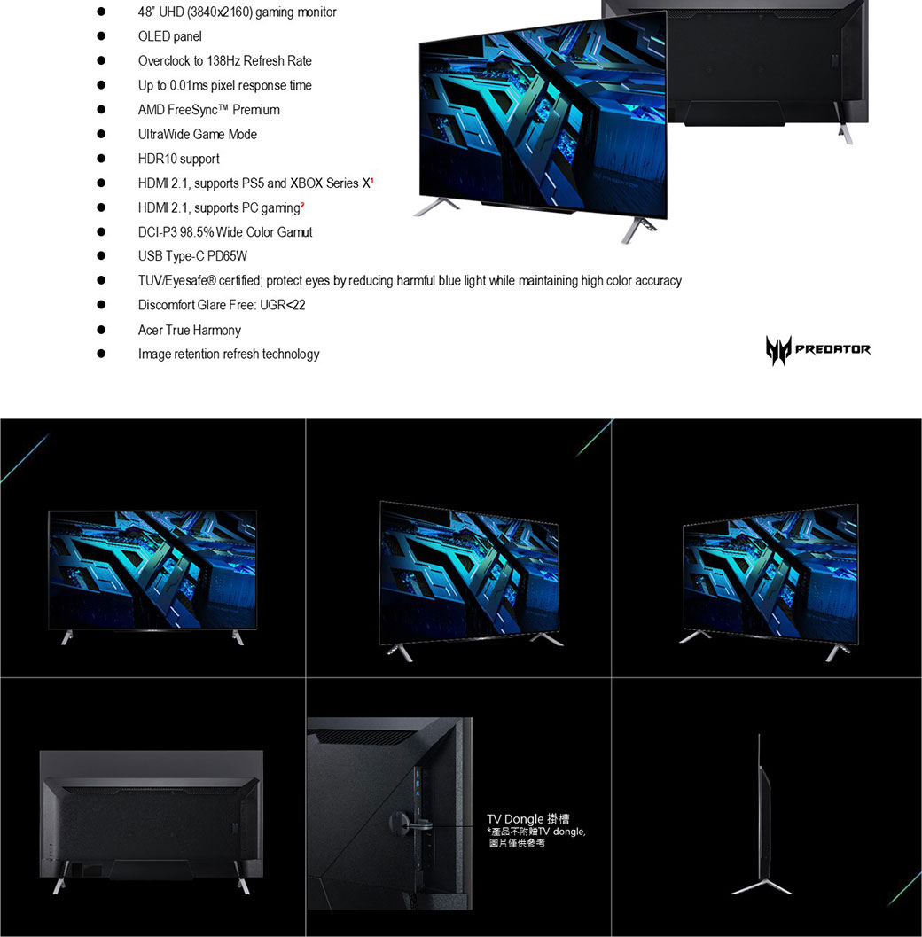 ACER CG48(4H1P1C/0.01ms/OLED/138Hz/含喇叭/FreeSync Premium)