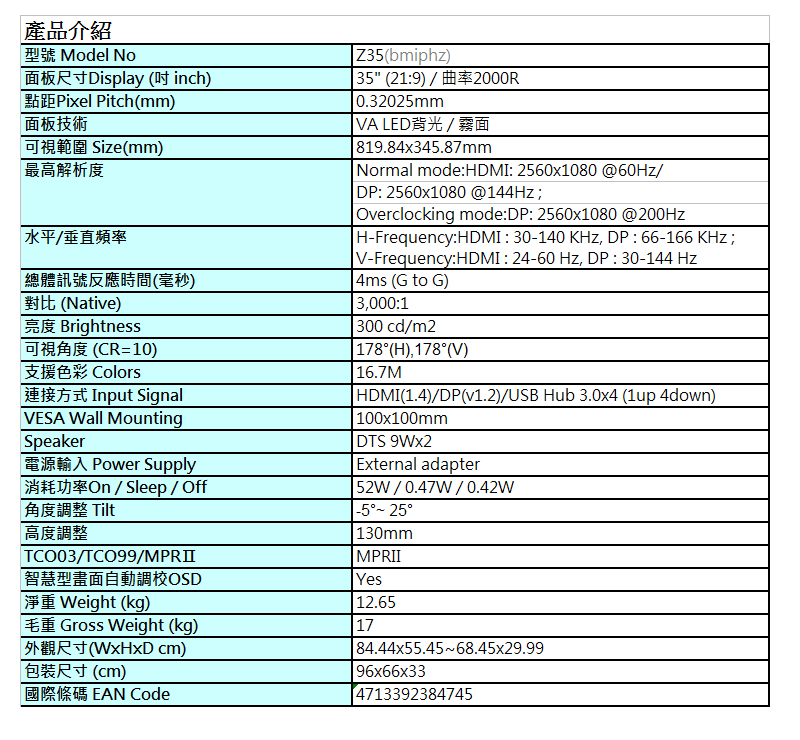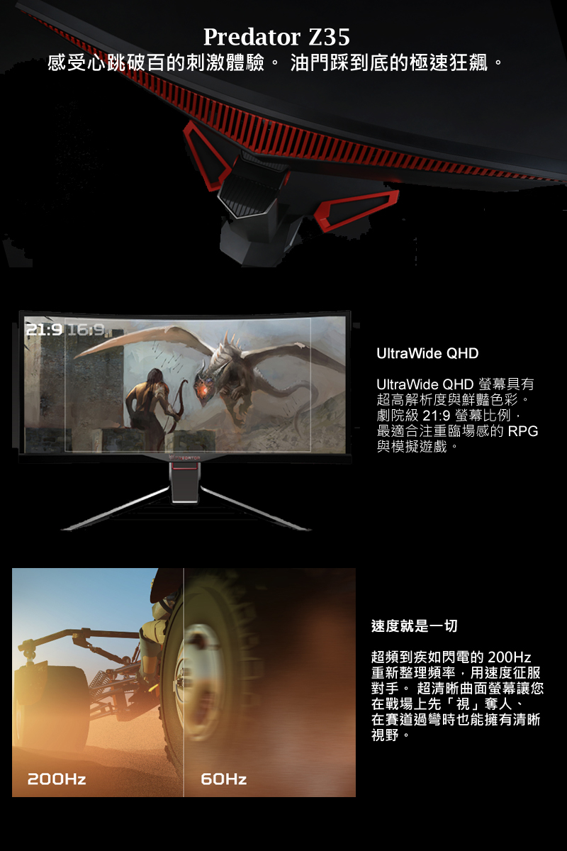 ACER Predator Z35(1H1P/4ms/VA曲面/200Hz/含喇叭)G-sync