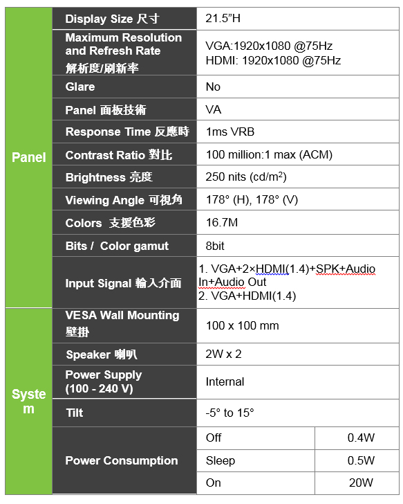 ACER KA222Q A(1A1H/1ms/VA/含喇叭/FreeSync) 低藍光.護眼