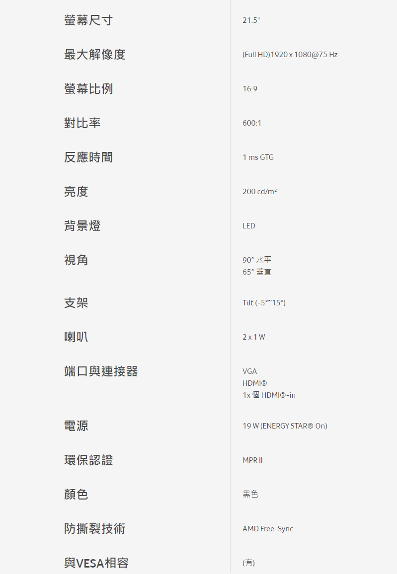 ACER KG221Q A(1A1H/1ms/TN/含喇叭/FreeSync) 電競機