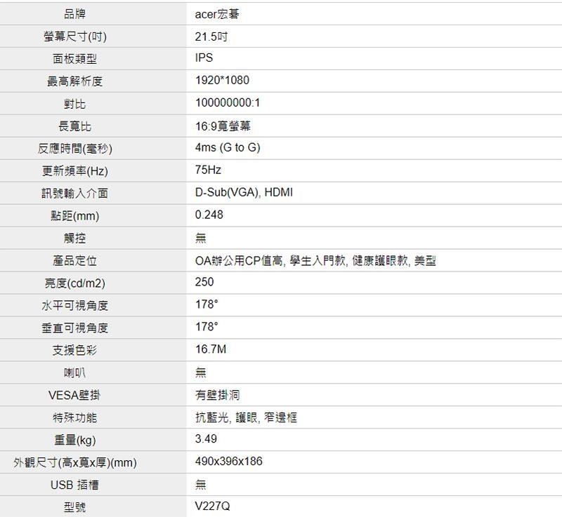 ACER V227Q(bmix)(1A1H/4ms/IPS/含喇叭)美型窄邊框.護眼.低藍光