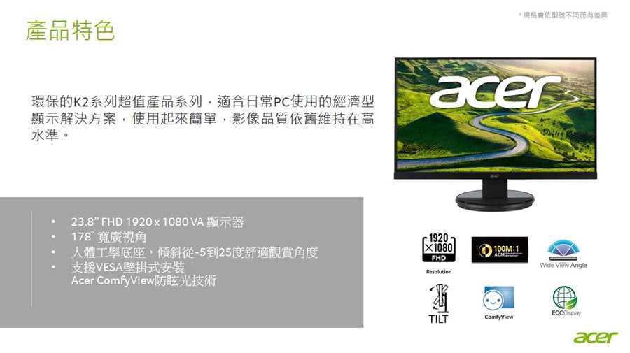 ACER K242HYL H(1A1H/1ms/VA/無喇叭)無邊框設計