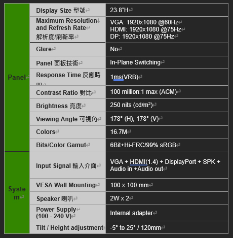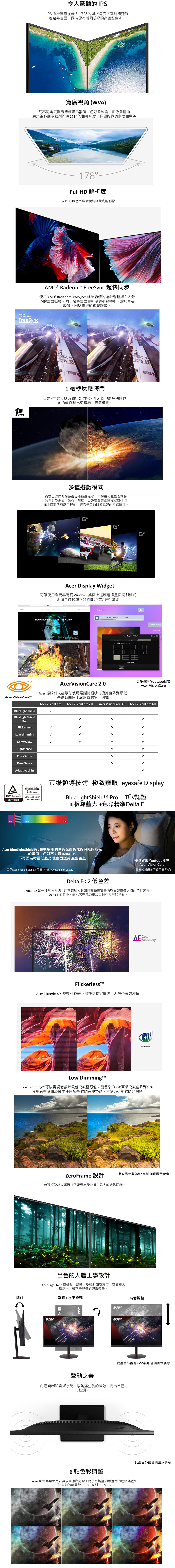 ACER CBL242Y(1A1H1P/1ms/IPS/含喇叭/FreeSync)窄邊螢幕. Delta-E< 2
