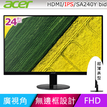 ACER SA240Y(bid)(1A1D1H/4ms/AH-IPS/無喇叭)SA纖薄美形.無邊框.三介面