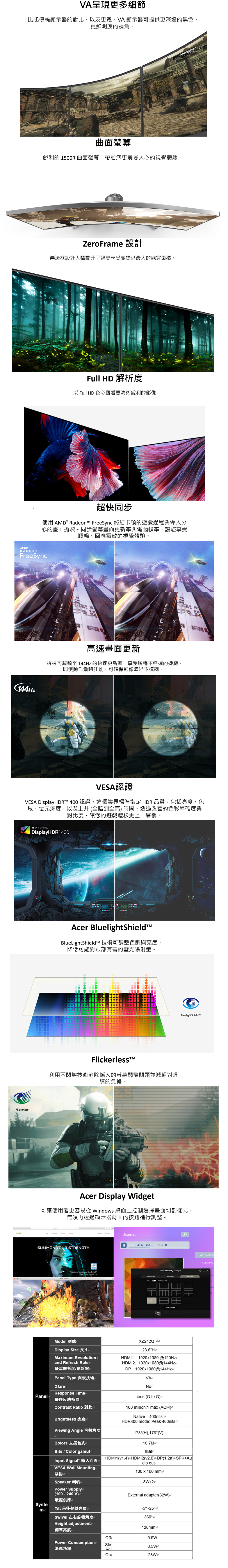 ACER XZ242Q P(2H1P/4ms/VA曲面/144Hz/含喇叭/FreeSync/HDR400)