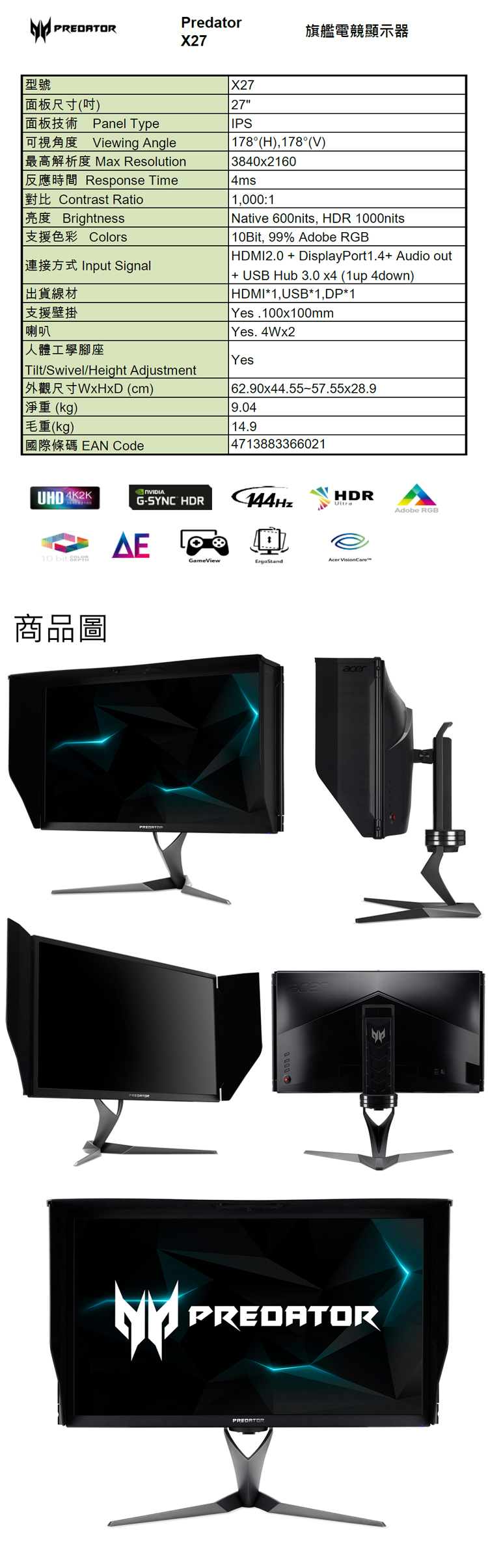 ACER Predator X27(1H1P/4ms/IPS/144Hz/含喇叭)專業遮光罩-機皇