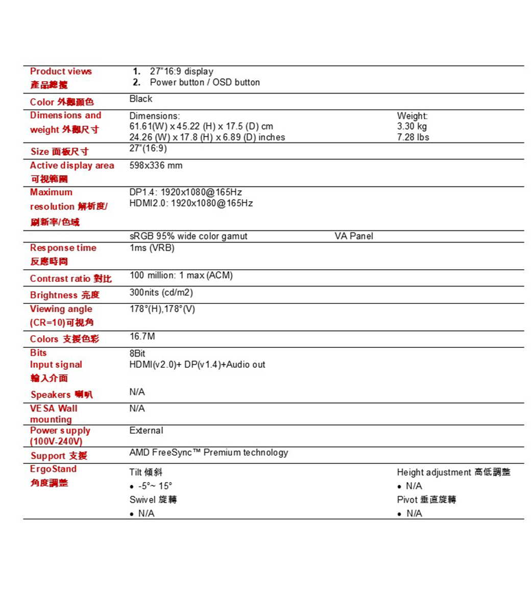 ACER QG270 P3(1H1P/1ms/VA/165Hz/無喇叭/FreeSync Premium)