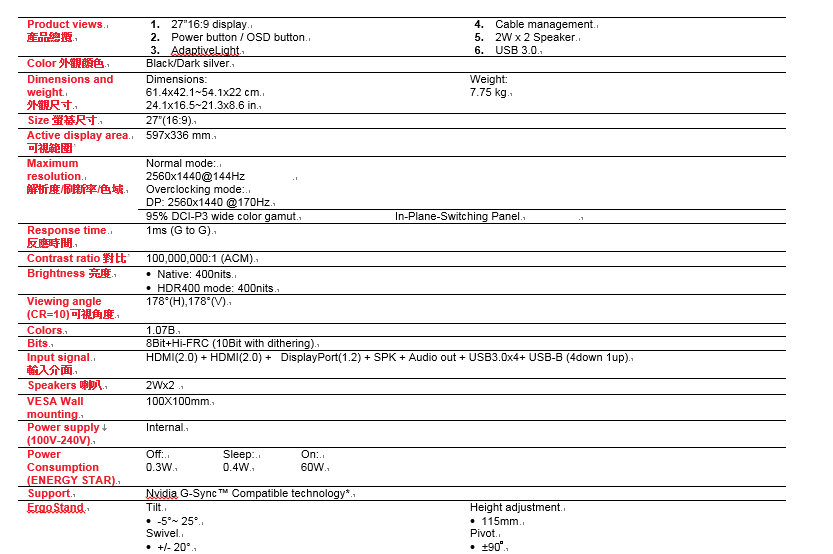 • 華碩 VY27UQY〈2H1P/IPS/含喇叭/HDR10〉