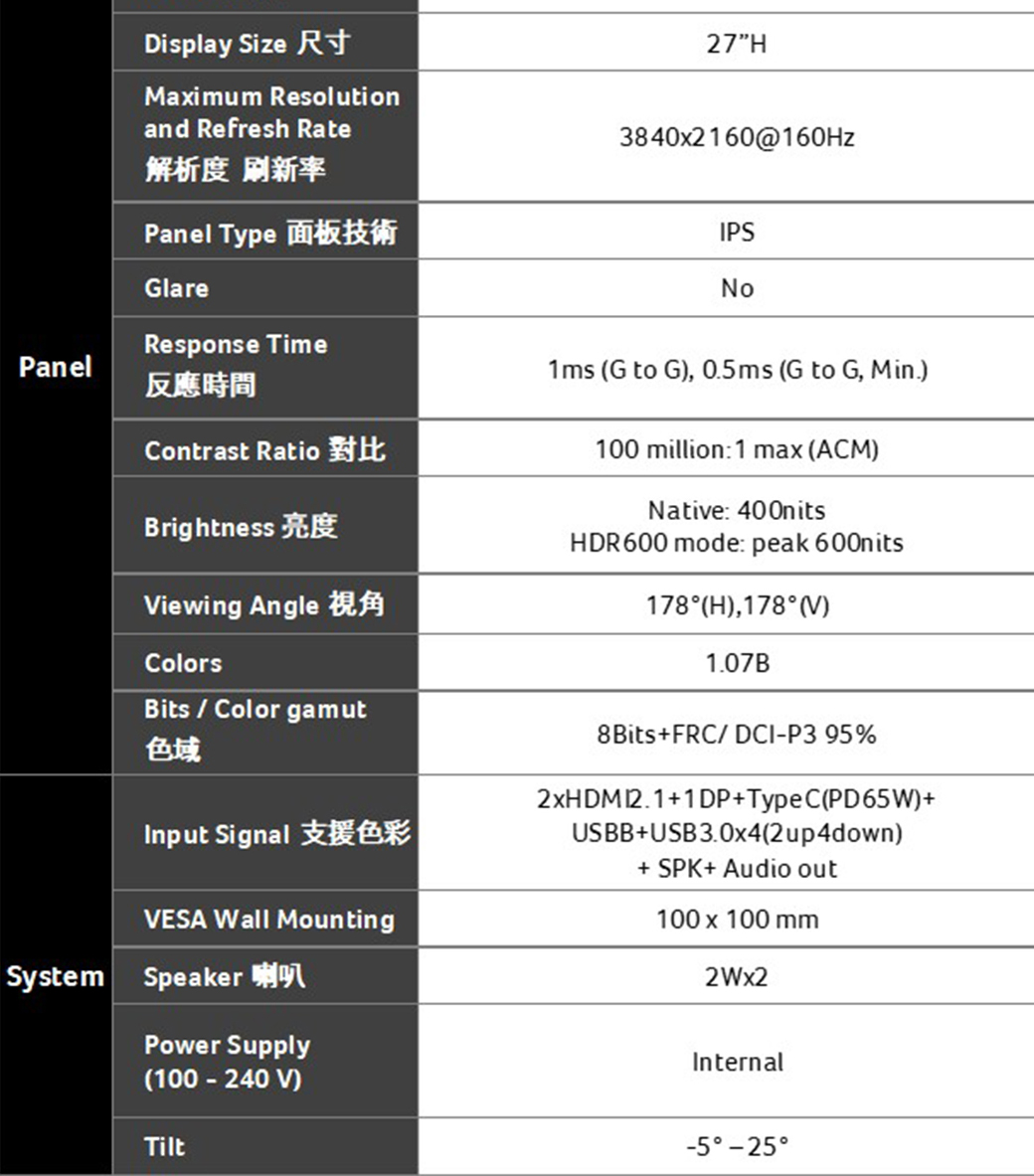 ACER XV272K LV(2H1P1C/0.5ms/IPS/160Hz/含喇叭/FreeSync Premium) HDMI 2.1 機種