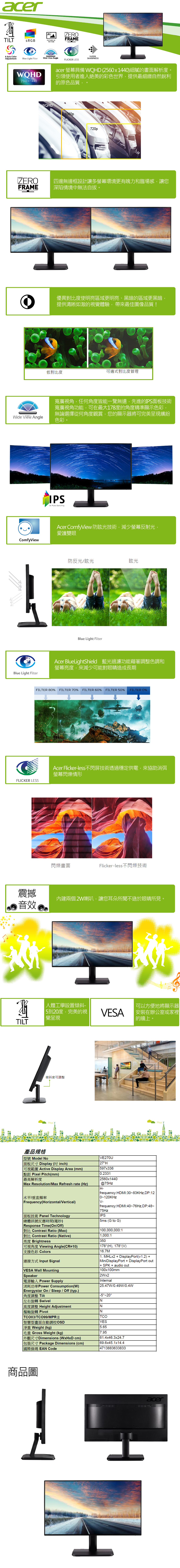 ACER VE270U(2H1P1MP/5ms/IPS/含喇叭)四邊無邊框.廣色域100% sRGB.支援PIP