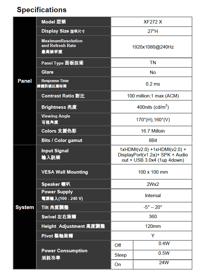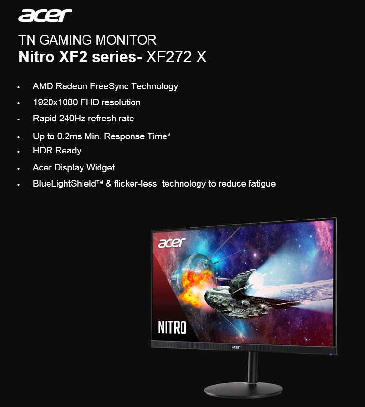 ACER XF272 X(2H1P/0.2ms/TN/240Hz/含喇叭/FreeSync/HDR)不閃屏.瀘藍光