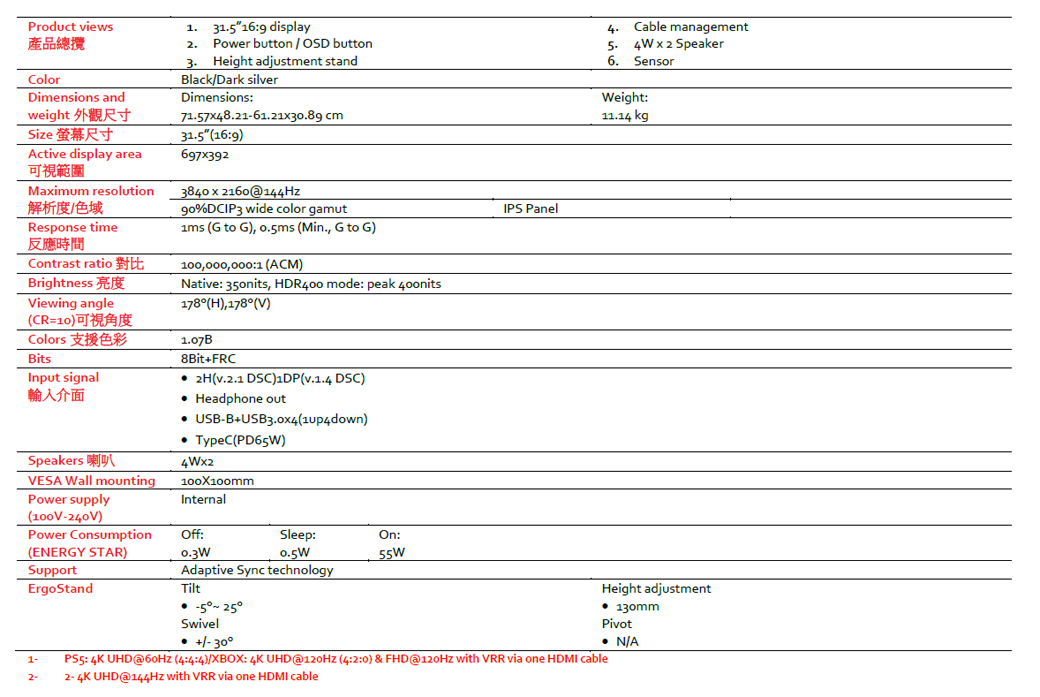 ACER XB323QK NV(2H1P1C/0.5ms/IPS/144Hz/含喇叭/Adaptive-Sync) HDMI 2.1