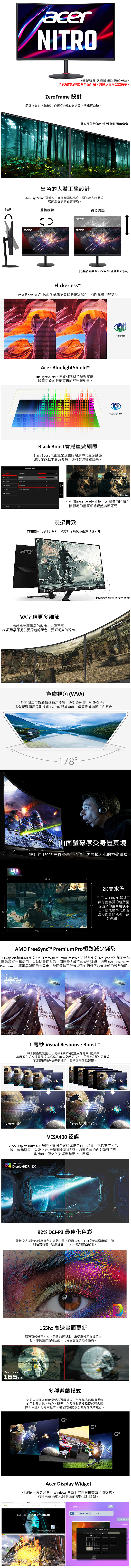 ACER XZ322QU S(2H1P/1ms/VA曲面/165Hz/含喇叭/FreeSync Premium/HDR400)