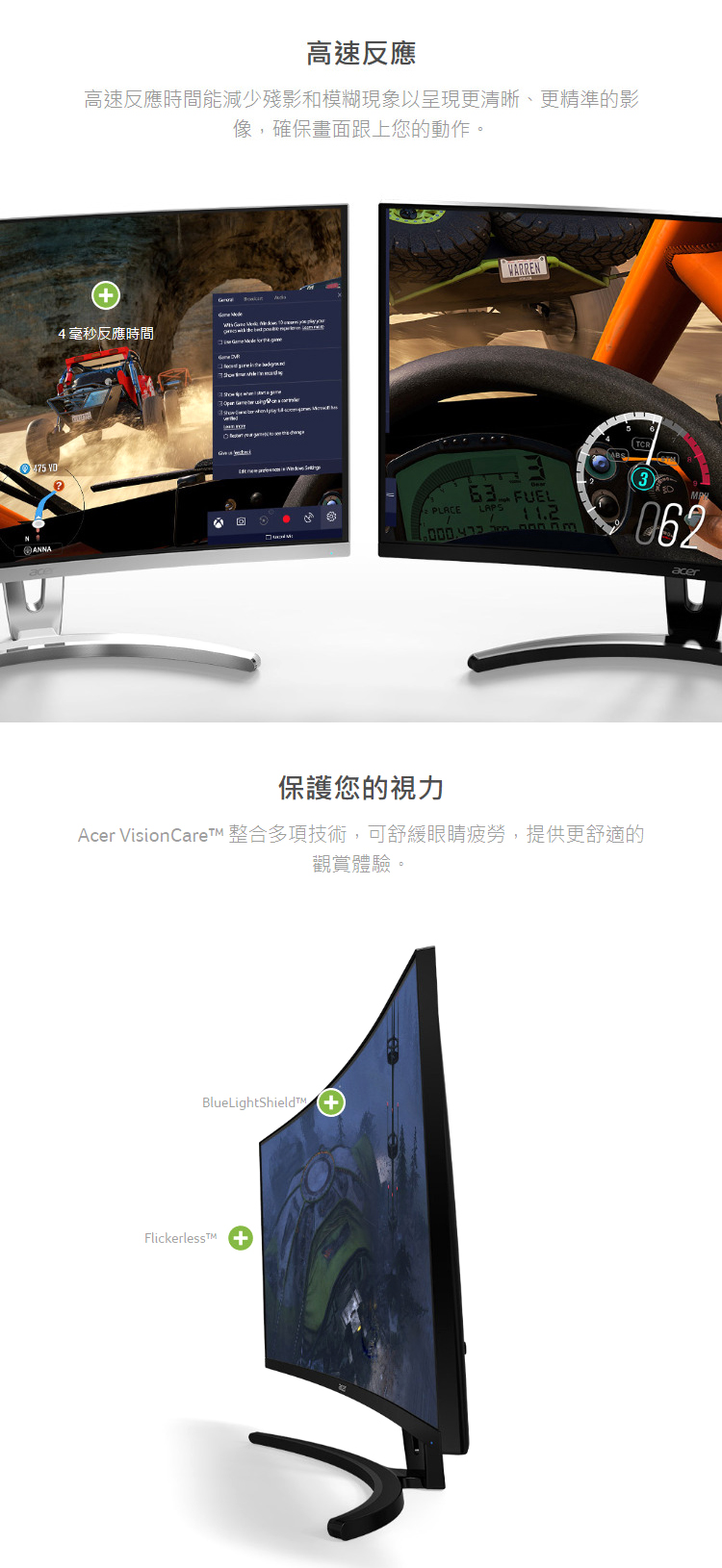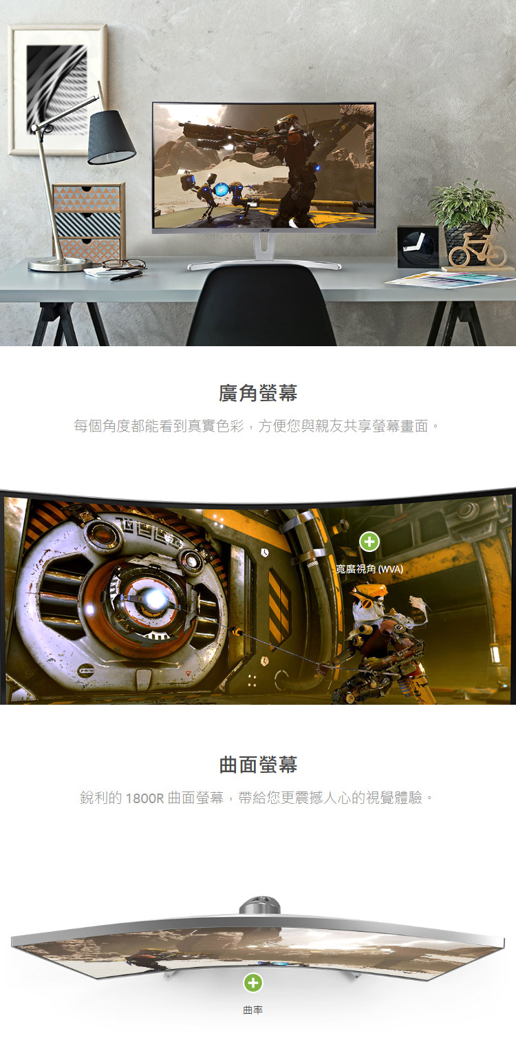 Acer 宏碁|32型 VA 無邊框電競螢幕(ED323QUR A)