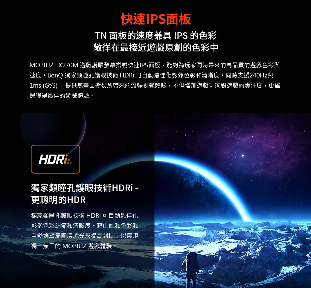 BenQ MOBIUZ EX270M(2H1P/IPS/240Hz/含喇叭//FreeSync Premium/HDR10)