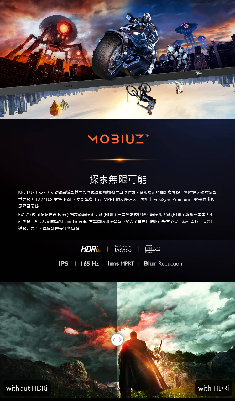 BenQ MOBIUZ EX2710S(2H1P/IPS/165Hz/含喇叭/FreeSync Premium/HDR10)