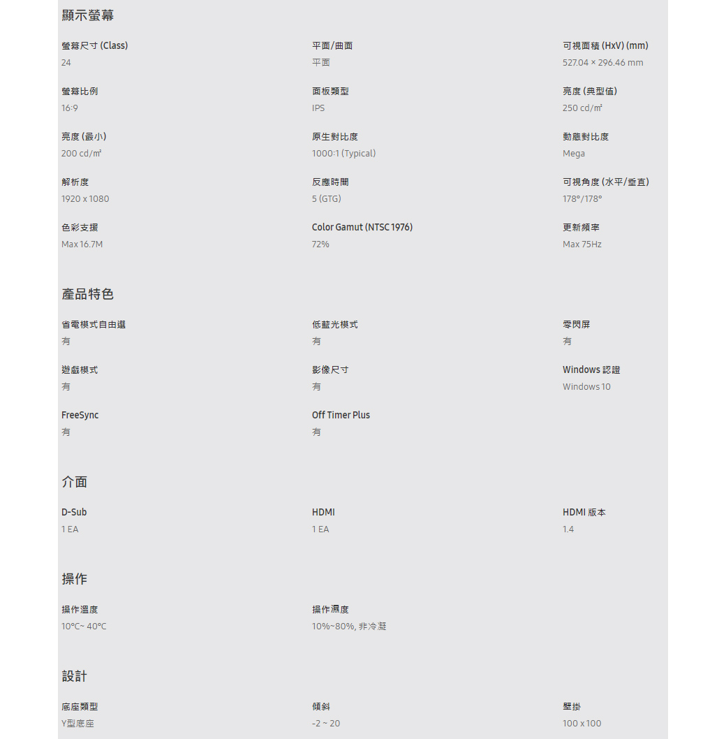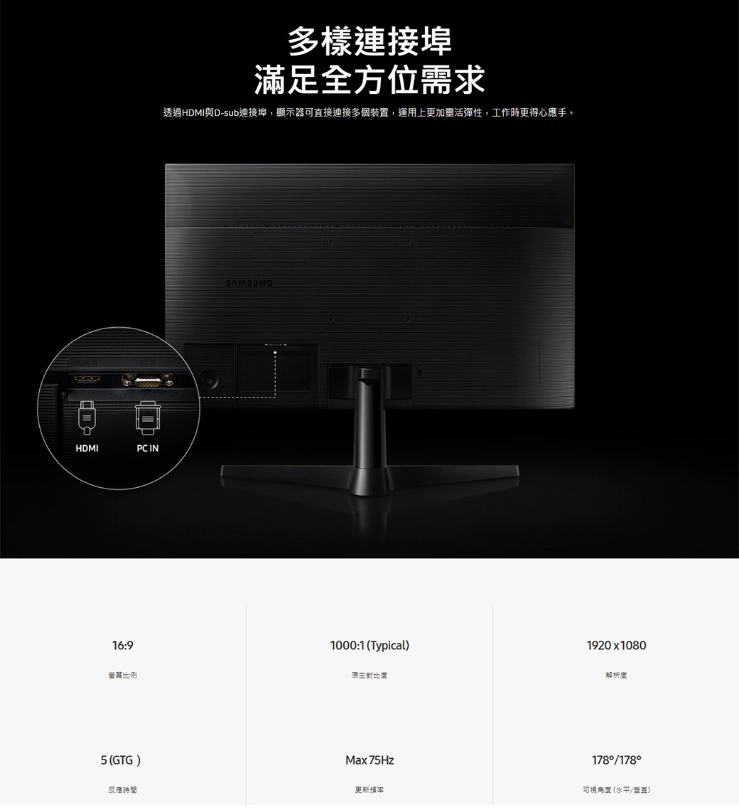 三星 F24T350FHC(1A1H/5ms/IPS/無喇叭/FreeSync)