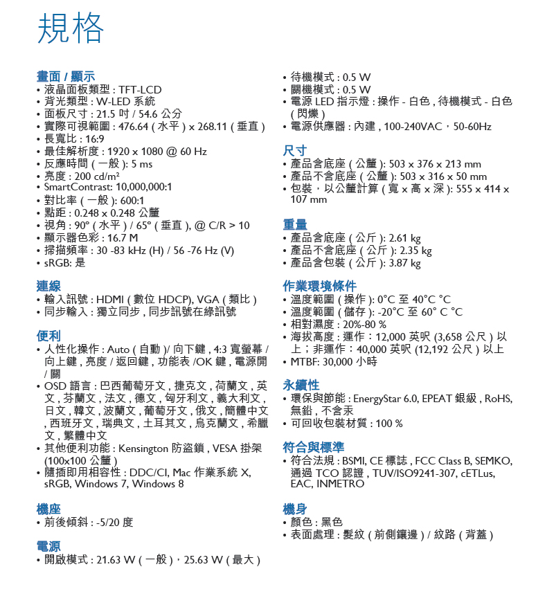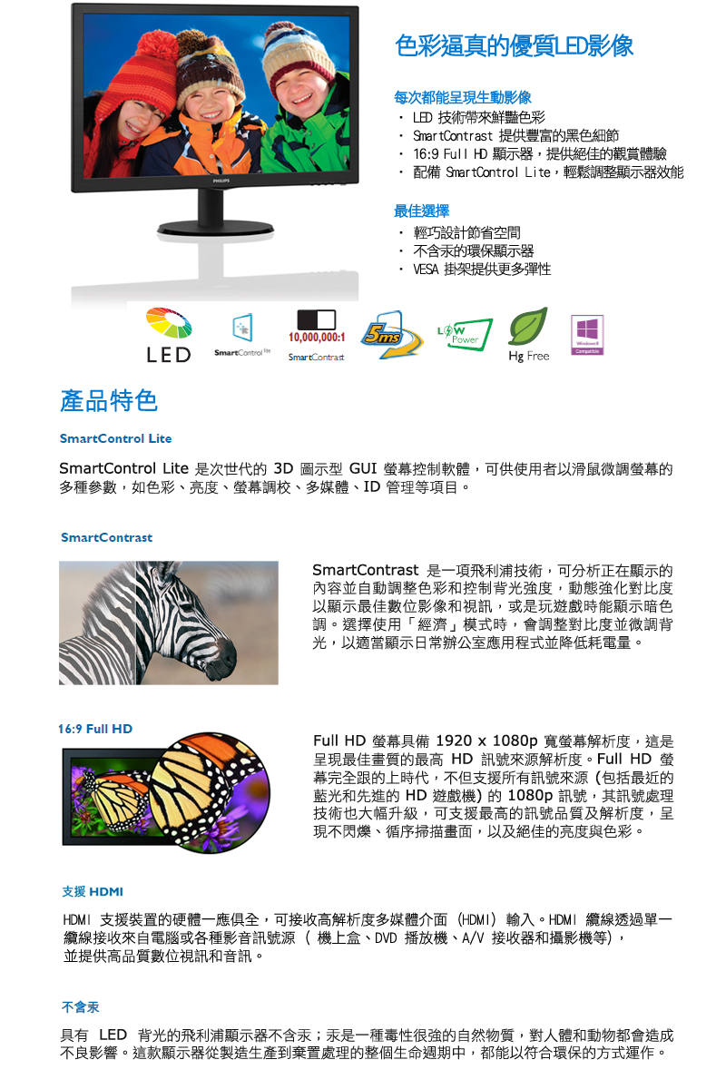 PHILIPS 223V5LHSB2(1A1H/5ms/TN/無喇叭)