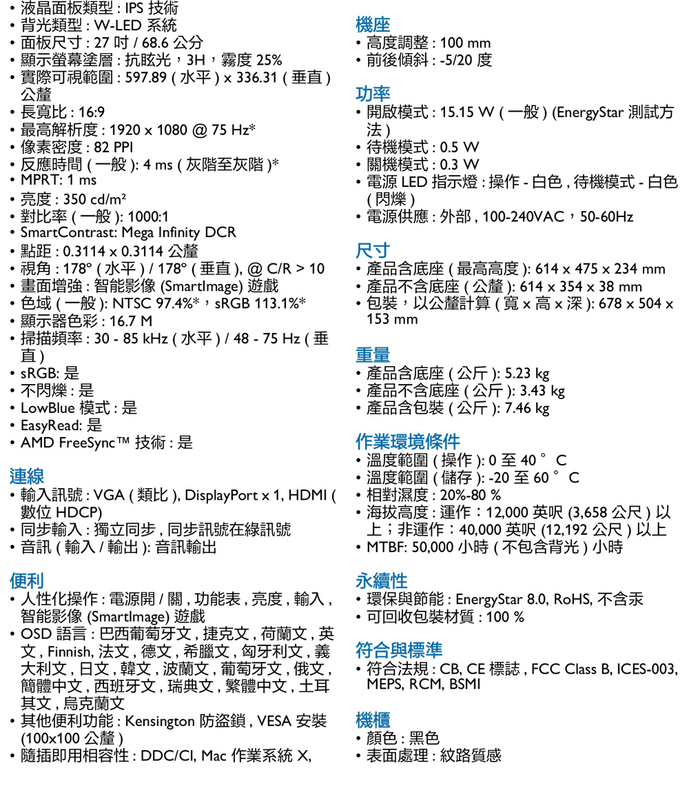PHILIPS 272E2FE(1A1H1P/1ms/IPS/無喇叭/FreeSync) 4 側邊框極無