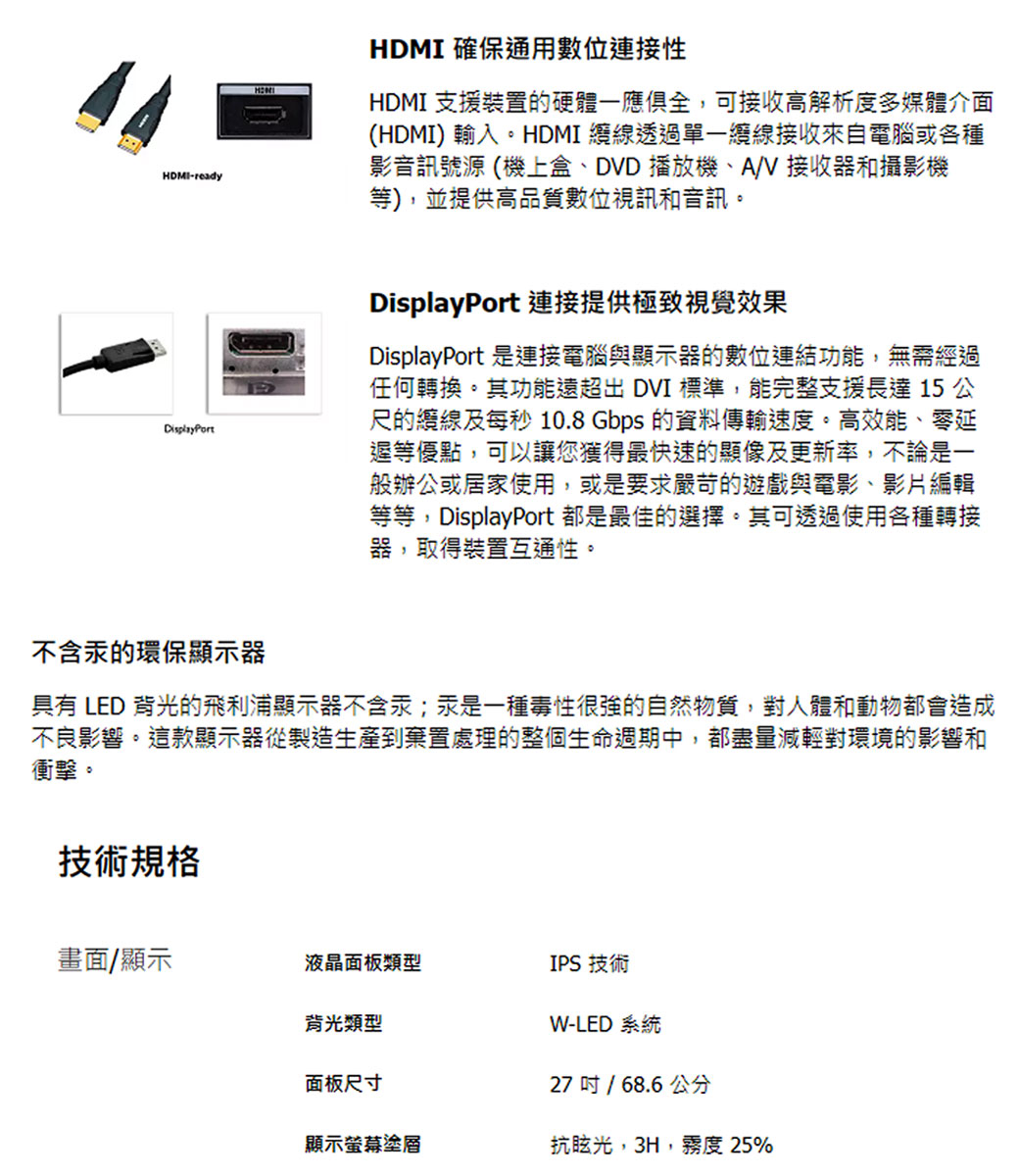PHILIPS 275E1S(27型/2K/HDMI/IPS)