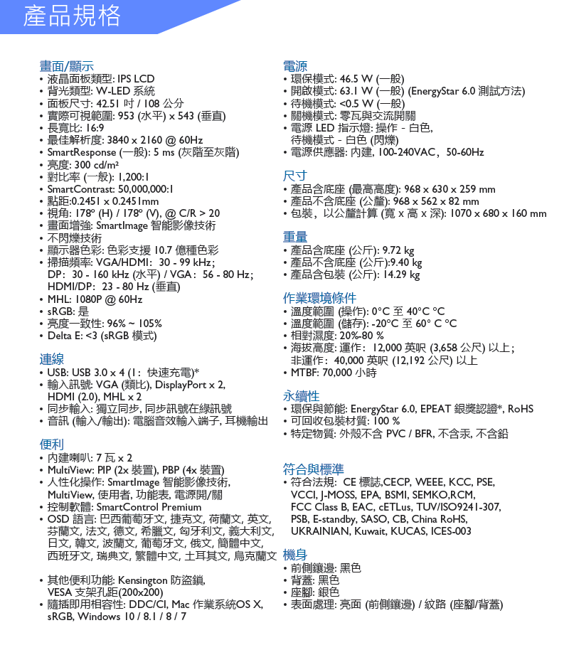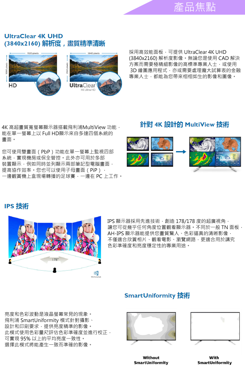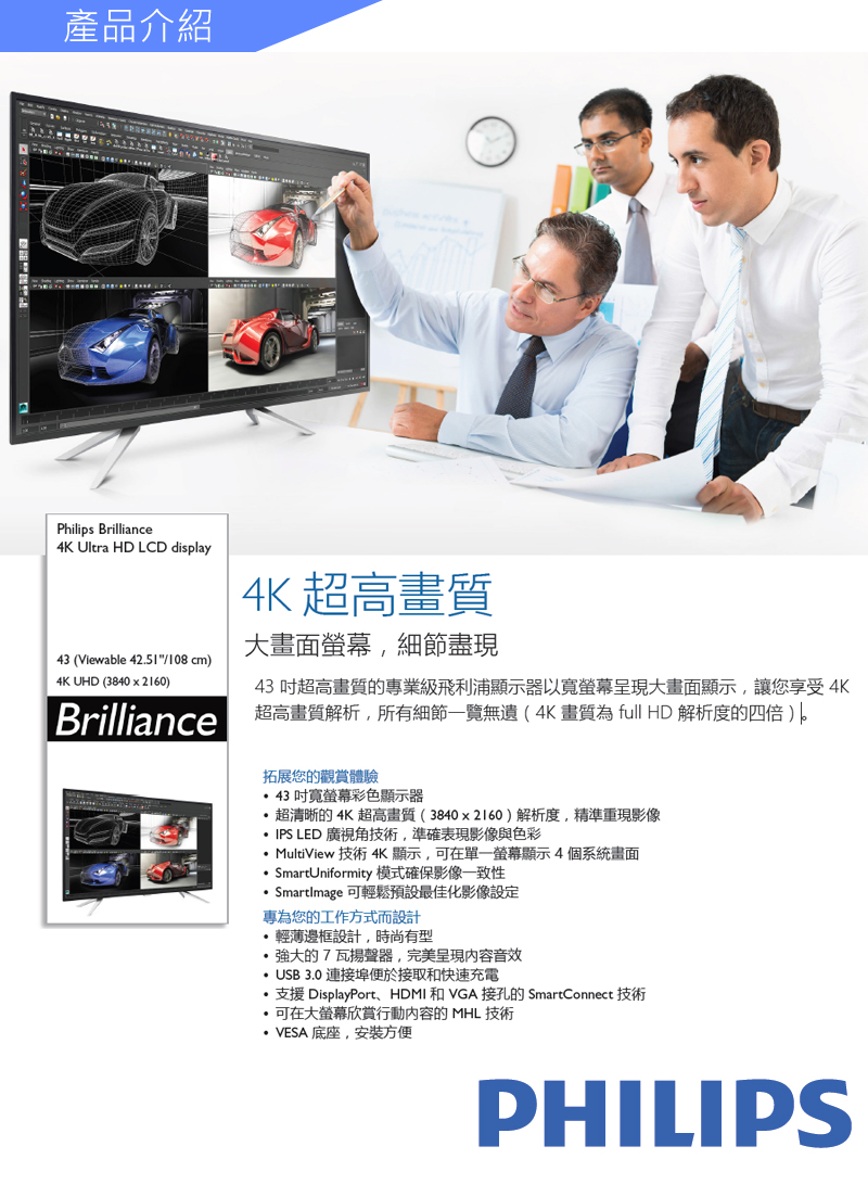 PHILIPS BDM4350UC(1A2H2P/5ms/IPS/含喇叭)MHL.USB3.0
