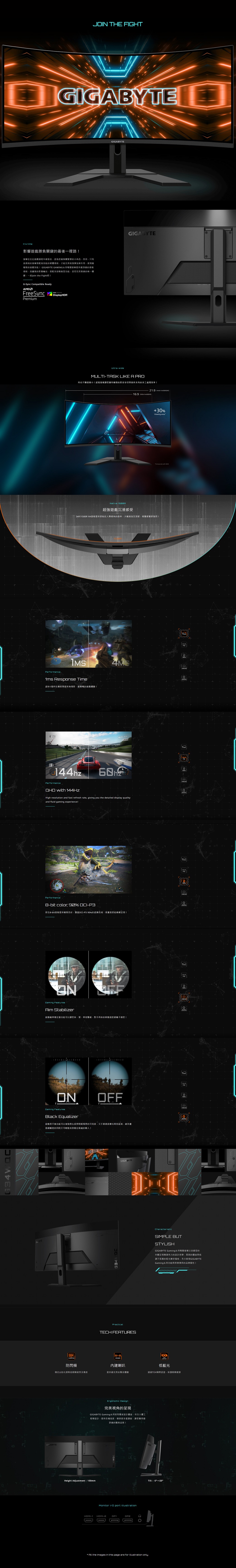 • 技嘉 G34WQC(2H1P/VA曲面/144Hz/含喇叭/FreeSync/HDR400)